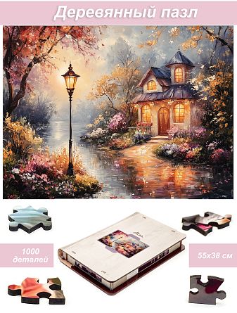 Пазл деревянный Алма ПРЕМИУМ 1000 деталей. Сказочные домики. Очарование дождливого вечера.