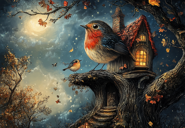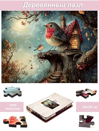 Пазл деревянный Алма ПРЕМИУМ 1000 деталей. Сказочные домики. Яркая птица в мире ночных чудес