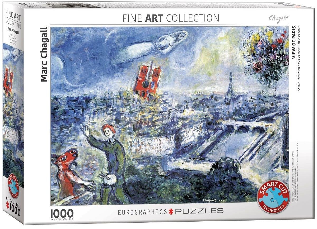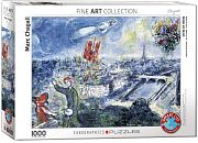 Марк Шагал и репродукция его картины. Ирреальный стиль художника, совмещение несовместимого, Эйфелева башня, множество образов - все это есть в этом пазле.
