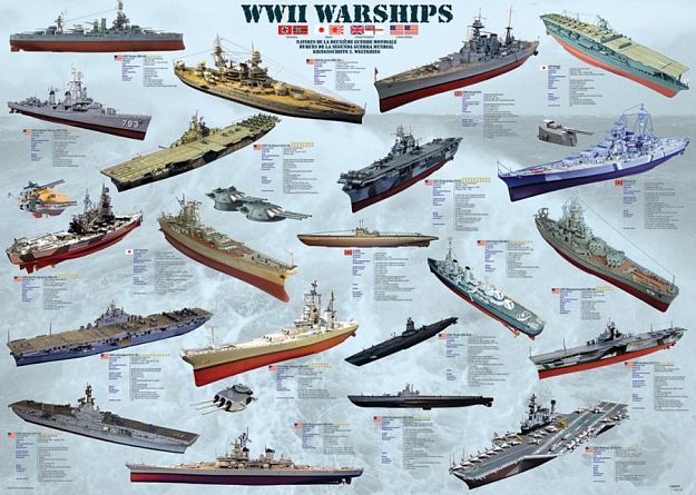 Коллаж из кораблей второй мировой войны. Можно вспоминать историю, можно изучать технику, а можно просто собирать пазл, если вы любите корабли.