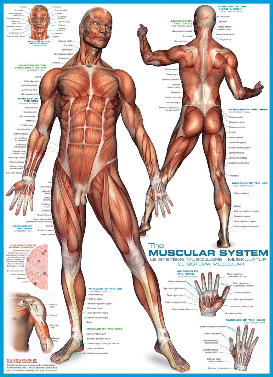 Изучаем анатомию - мышцы, сухожилия. С пазлом это сделать гораздо проще - собрав все 1000 деталей вы обязательно запомните все и уже никогда не забудете.