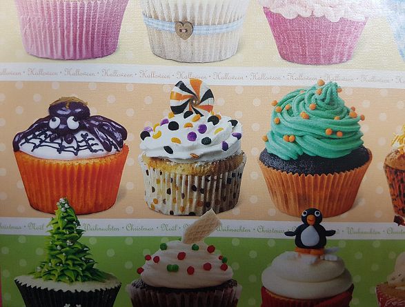 Коллаж из совершенно разных кексов и маффинов. Белые, розовые, голубые и даже зеленые. Легко собирается и будет отличным украшением кухни или оживит ярким цветом детскую. Веселый пазл для любителей коллажей.