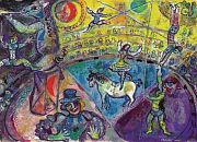 Марк Шагал и репродукция картины "Цирковая лошадь". Цирк, манеж, выступление артистов, белая лошадь, акробаты, клоуны.