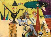 Репродукция испанского живописца 20 века, сюрреализм. Сельская жизнь, поле, животные, растения, дом. Специфический, но пейзаж.