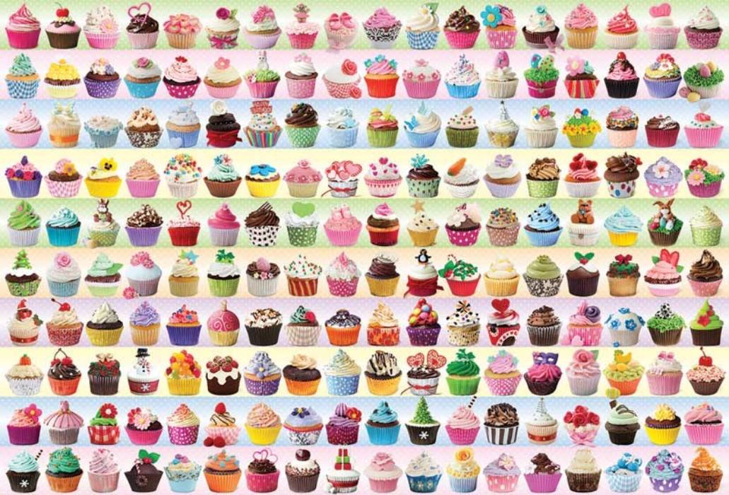 Коллаж с вкусными кексами. Их тут гораздо больше сотни и все - разные. Отличный пазл на 2000 деталей для любителей сладкого, яркая и вкусная выпечка ждет вас!