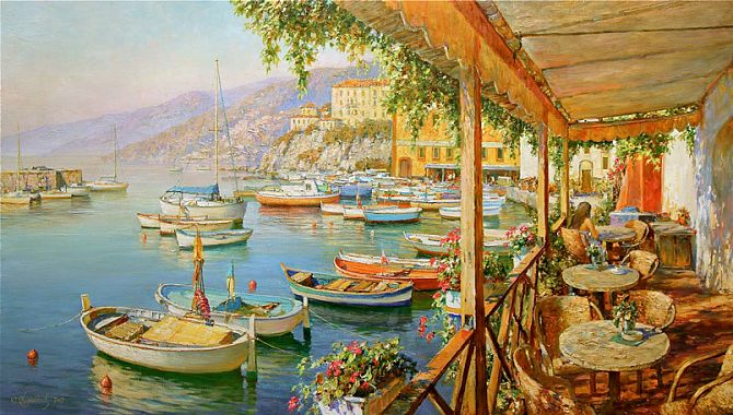 Пазл Фрея 1000 деталей: Завтрак в кафе у причала