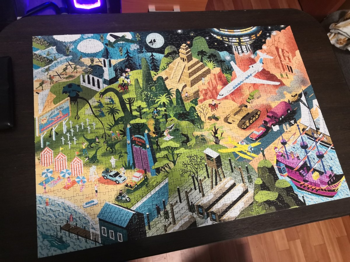 Пазл очень понравился тем, что он сделан в стиле "найди фильмы". Плюс он красочный, легкий в сборке (за счет легко распознаваемых деталей и цветов). Такие пазлы я называю пазлами для "релакса", т.к. собираются они будто сами собой.