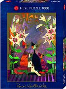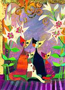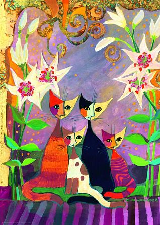 Семейство кошек и цветы лилии.