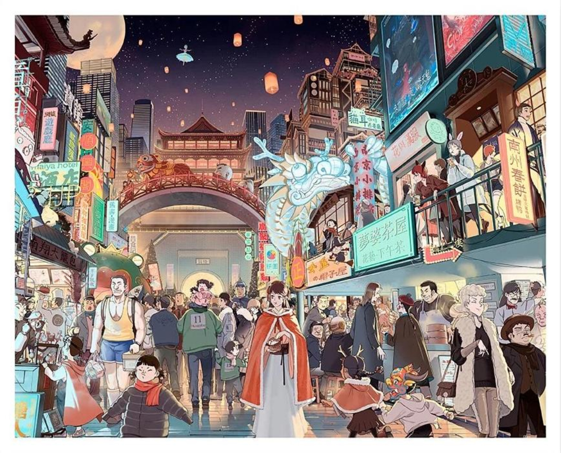 Аниме, Архитектура, Девушки, Сцены из жизни