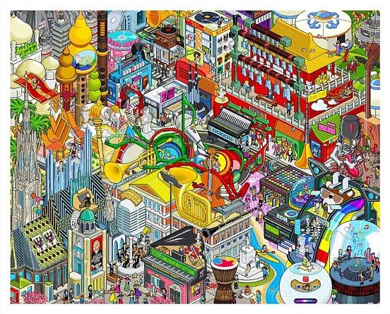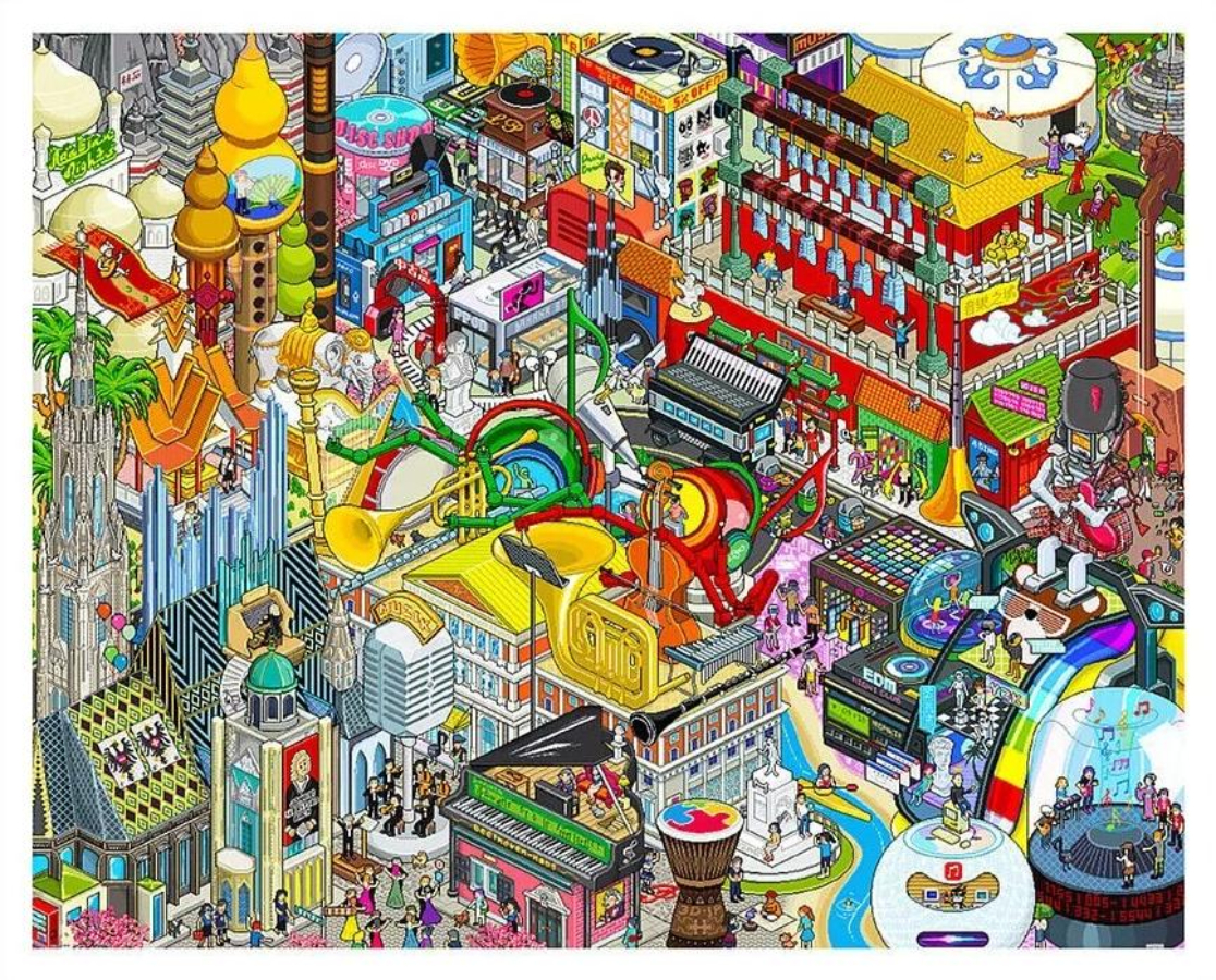 Пазл Pintoo 2000 деталей: Monki. Музыкальный город