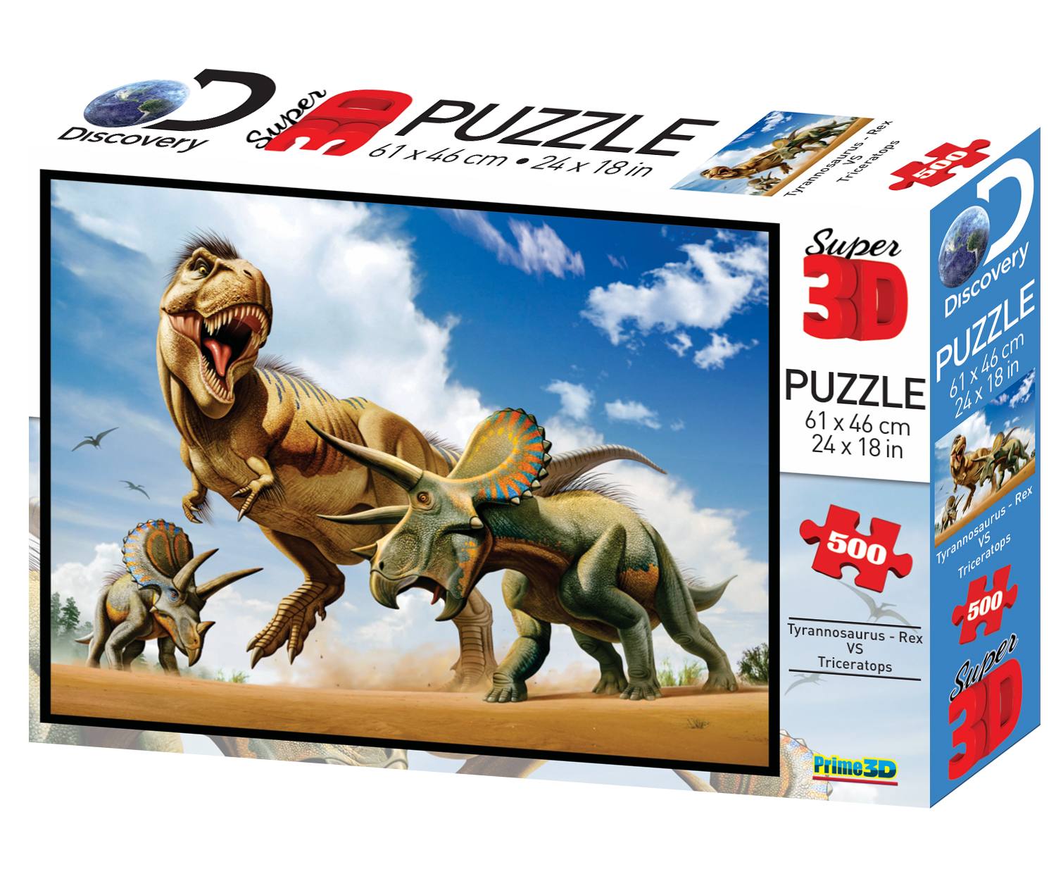 Пазл Prime 3D 500 деталей: Тираннозавр против трицератопса