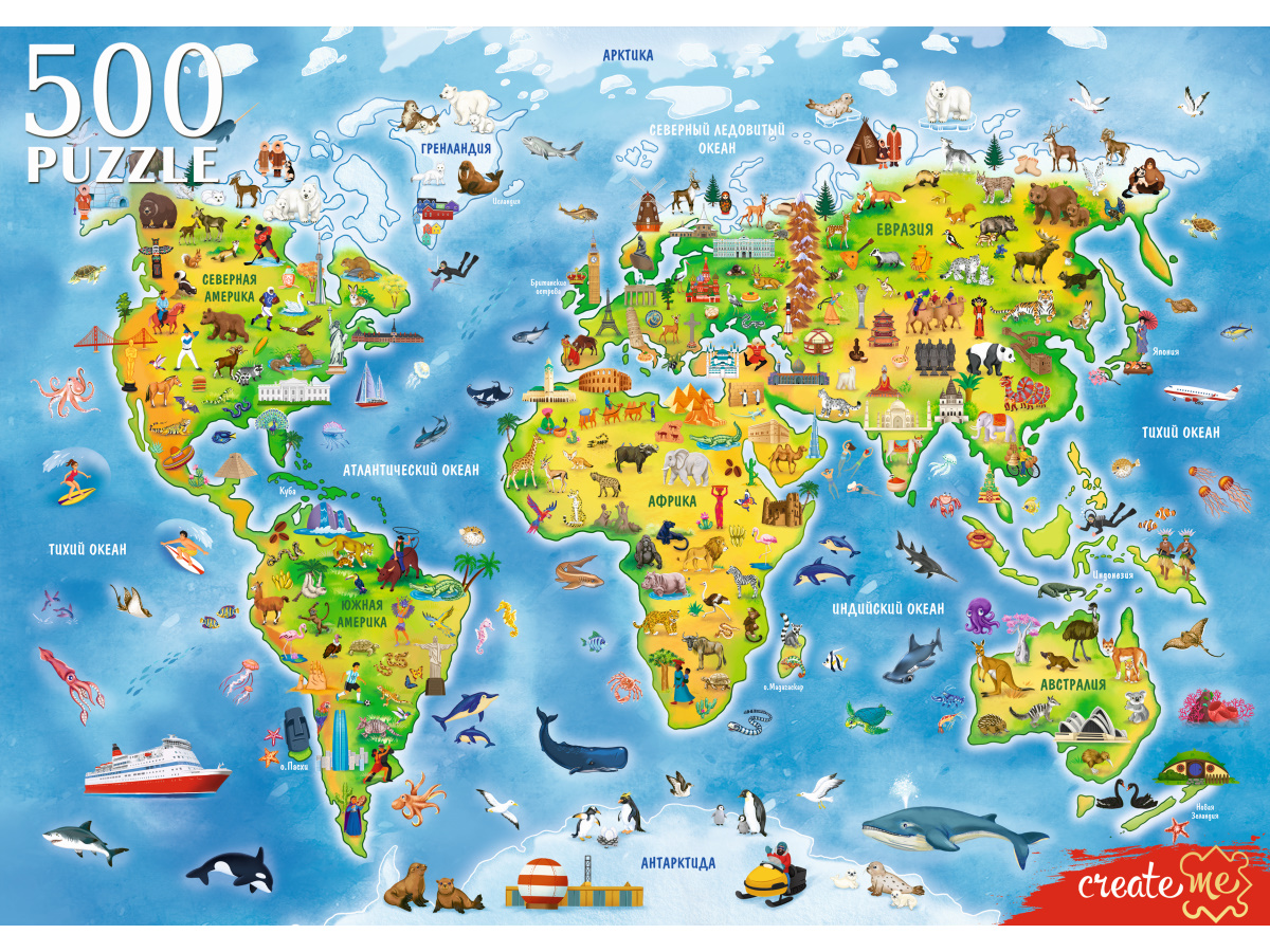 Пазл Рыжий Кот 500 деталей: Карта мира