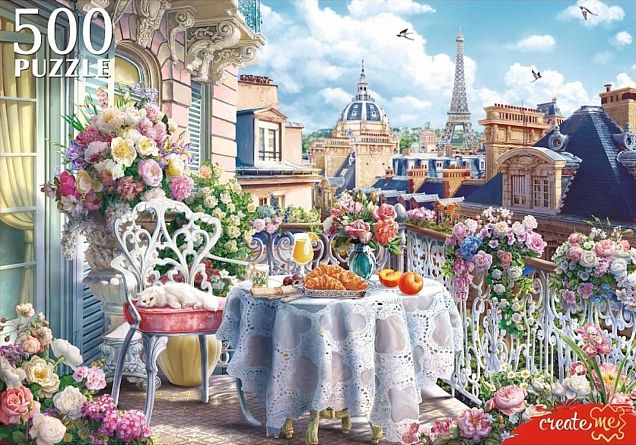 Пазл Рыжий Кот 500 деталей: Завтрак на балконе в Париже
