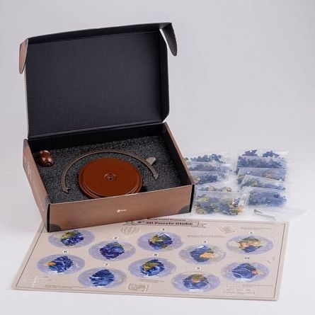 Пазл-шар - из прочного пластика, детали отлично крепятся друг к другу! Вся конструкция прекрасно держится на специальной подставке, которая входит в набор. Этот пазл подойдет детям и взрослым, порадует тех, кто немного подустал от обычных плоских мозаик, но тем не менее любит их собирать.