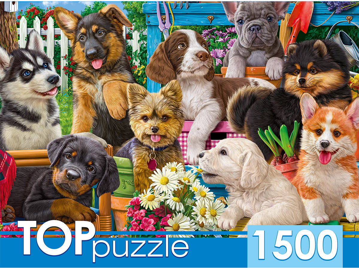 Пазл TOP Puzzle 1500 деталей: Компания щенков в саду