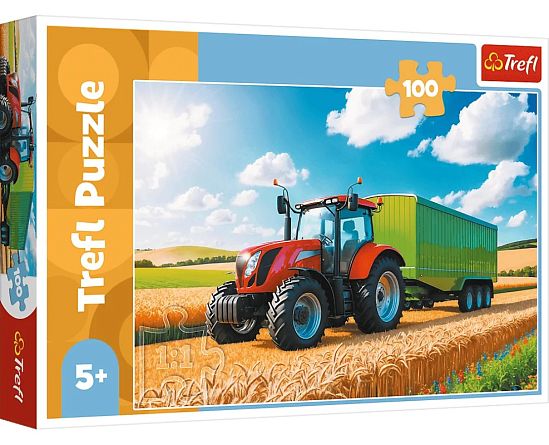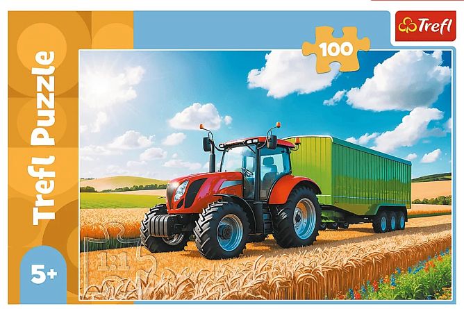Пазл Trefl 100 деталей: Трактор с прицепом