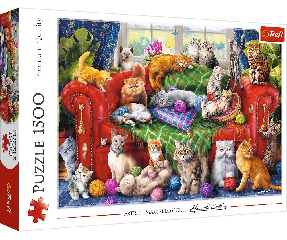 Пазл Рыжий Кот 1500 деталей: Ночные котята в корзине