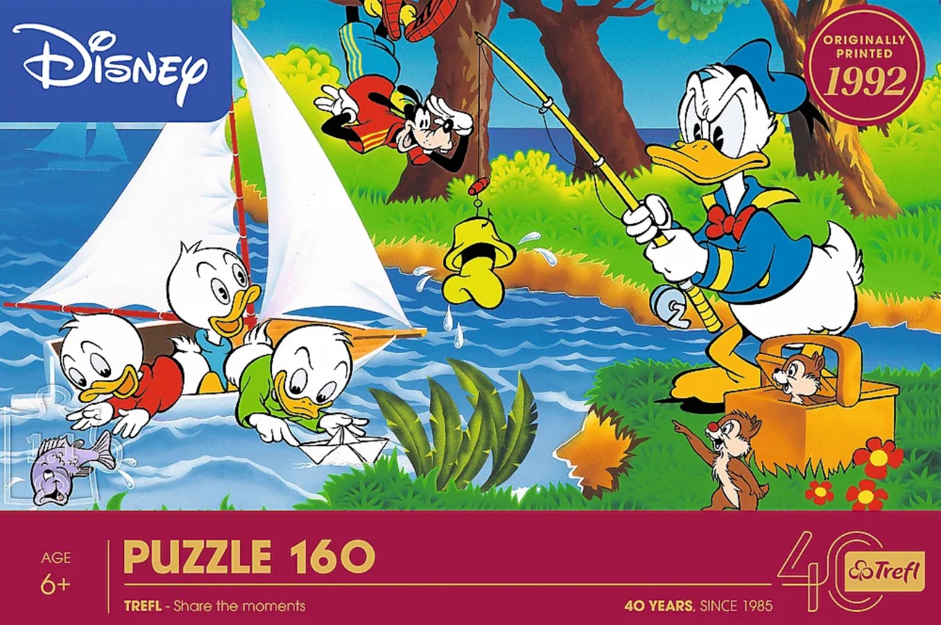 Пазл Trefl 160 деталей: 40 лет Trefl - Приключение на берегу озера, Дональд Дак