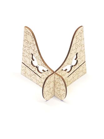 Держатель коробки - незаменимая вещь для всех любителей пазлов. Удобно собирать, когда картинка прямо перед тобой, экономится место на столе - ведь коробка стоит вертикально. Простая, но надежная подставка для коробки сделает процесс сборки более комфортным. Конечно, любой пазл можно собирать, не используя никаких дополнительных приспособлений, но ведь гораздо удобнее делать это на коврике для пазлов, чем на столе (которые обязательно кому-нибудь понадобится на самом интересном месте сборки), можно склеивать результат скотчем, а можно использовать специальный клей для пазла и результат будет более надежным. И, гораздо удобнее использовать держатель коробки, чем просто ставить ее вертикально или сооружать под нее подставки. Поставляется в разобранном виде, сборка занимает 5 секунд, а стильный внешний вид впишется в любой интерьер. Изготовлен из фанеры.
