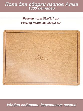 Часто, при сборке деревянных пазлов, особенно на 1000 элементов, возникает проблема - а где собирать? На столе не удобно - до конца сборки стол будет занят, обычный коврик для сборки пазлов не подходят для деревянных - детали на них не держатся, легко скатываются, перенести пазл очень сложно. Наше поле для сборки - идеальное решение. Детали легко перемещаются по деревянному "коврику", рамка по краям не дает возможности деталям упасть, легко прервать процесс сборки - просто поднимите планшет для сборки пазлов и уберите, например, в шкаф. Обратите внимание на на размер - планшет сделан именно для пазлов Алма, для других производителей может не подходить. Планшет для сборки удобен для любых пазлов, и для деревянных, и для классических.